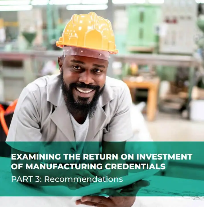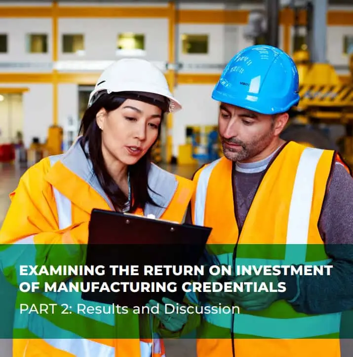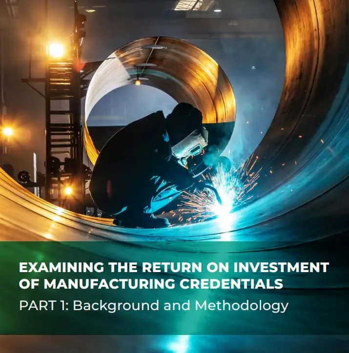 More information and outcomes of the research are detailed in the report, Examining the Return on Investment of Manufacturing Credentials. Specifically, the report is broken down into three parts: