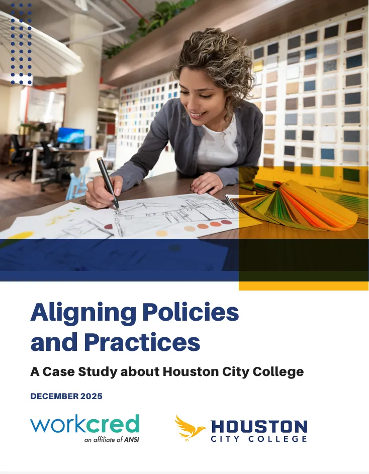 From 2023-2025, Workcred also worked with Houston City College (HCC) under a grant from Powell Foundation to examine how state and institutional policies can be better aligned to support learners in entering and completing credentialing pathways aligned with regional workforce needs. Workcred and HCC developed a case study to showcase how HCC changed existing institutional policies to align to new policies in Texas to better support learners to achieve the skills they need to enter the workforce and obtain jobs with family-sustaining wages.